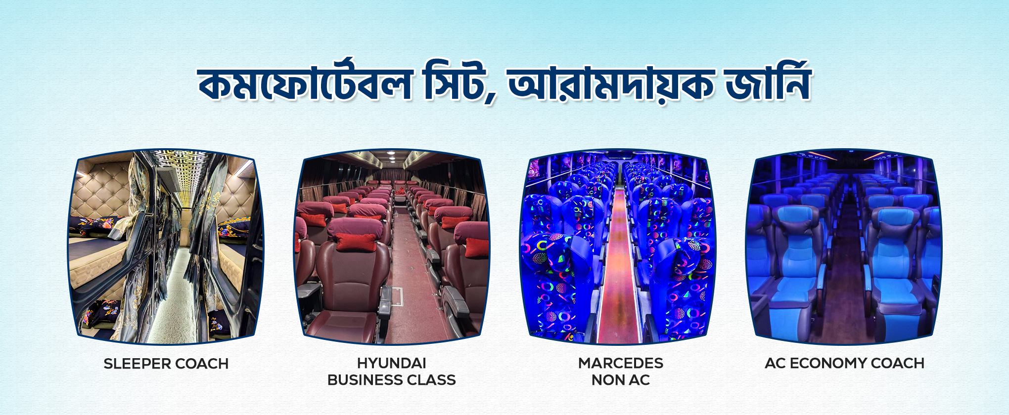 আমাদের অব্যহত প্রচেষ্টা সঠিক সময়ে আপনাদের যাত্রা নিশ্চিত করা । আপনাদের যাত্রা পথে পরিচ্ছন্ন সেবা প্রদান করাই আমাদের ব্রত । ই-টিকিট ক্রয় সংক্রান্ত যাবতীয় তথ্যের জন্য যোগাযোগ করুন এই নম্বরে ১৬৪৬০